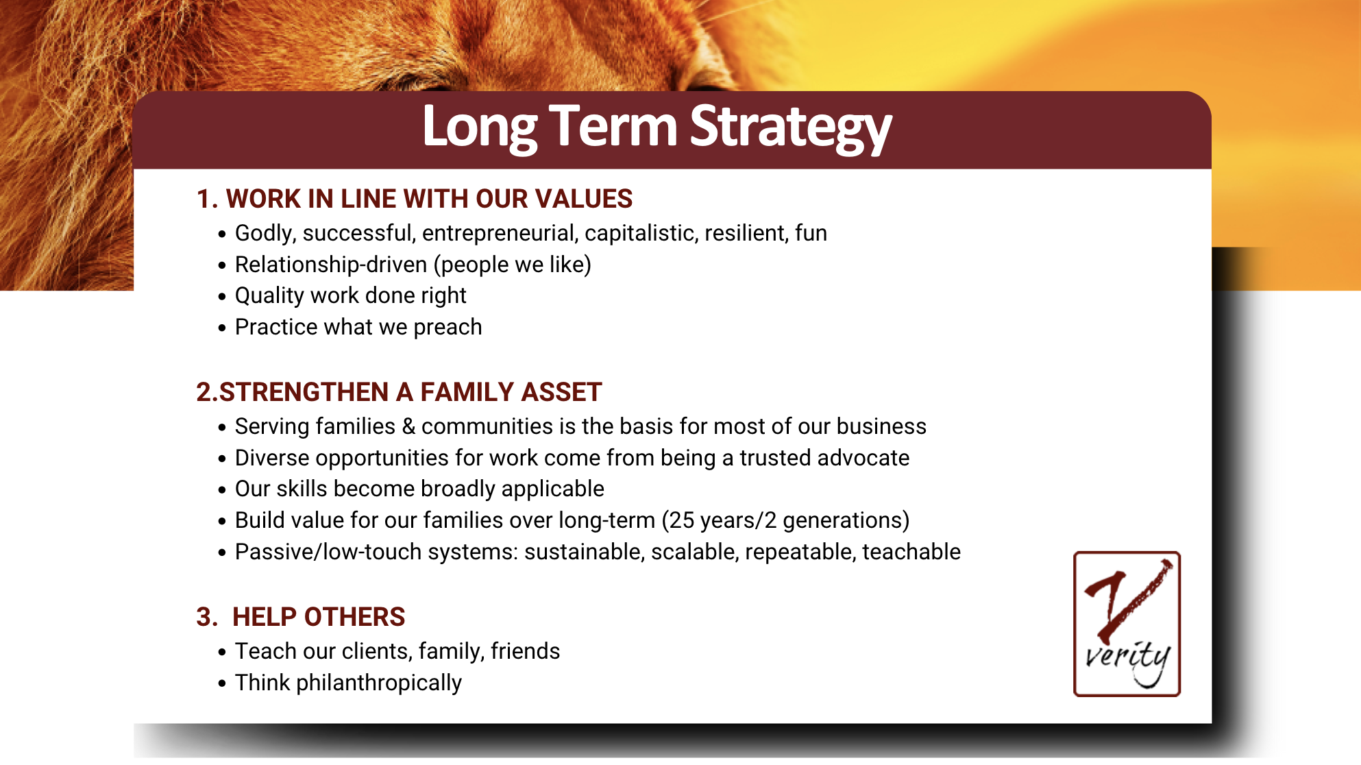 The heart and soul of our company is advising family-owned businesses. We specialize in navigating the unique challenges of building a world-class business while creating an exceptional family legacy to span generations.