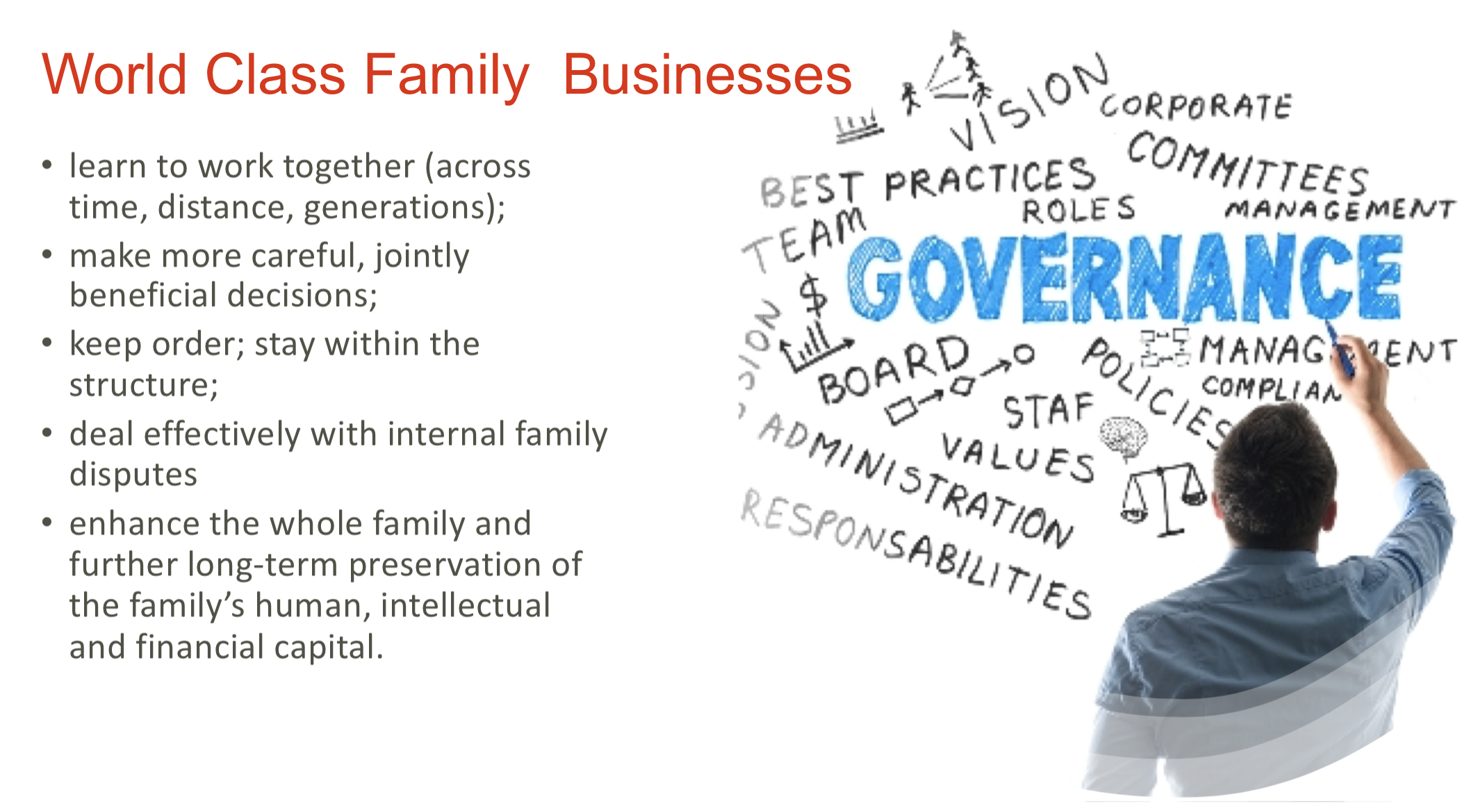 We specialize in helping family businesses owners navigate the unique challenges of becoming world-class while also creating an exceptional family legacy that can span generations.